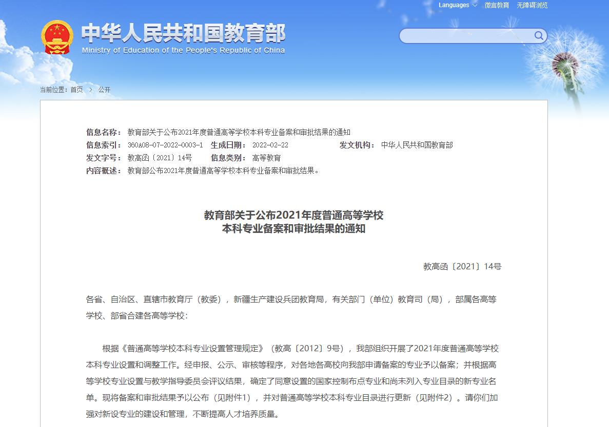 教育部关于公布2021年度普通高等学校 本科专业备案和审批结果的通知 -免费斗地主