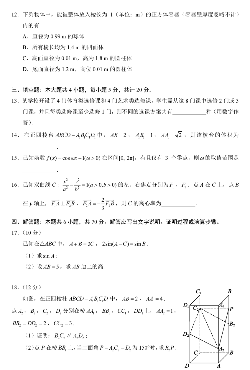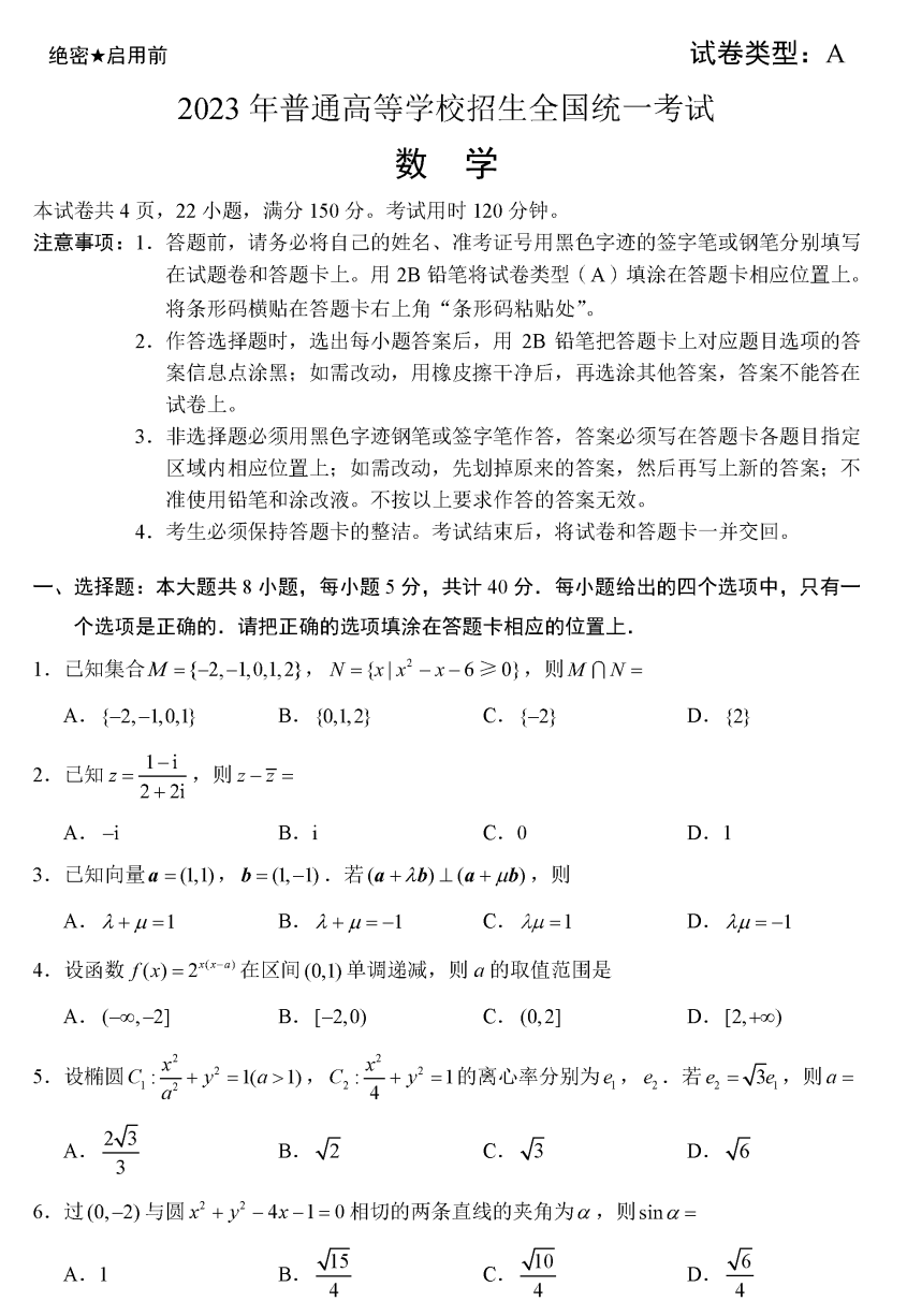 2023年普通高等学校招生全国统一考试全国乙卷数学 -免费斗地主