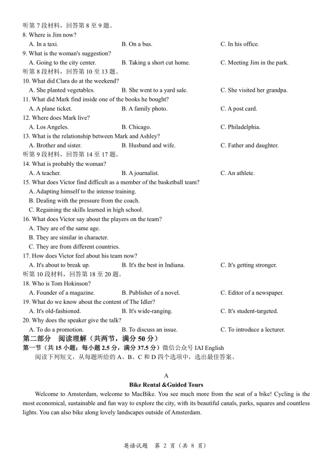 2023年普通高等学校招生全国统一考试全国乙卷英语 -免费斗地主