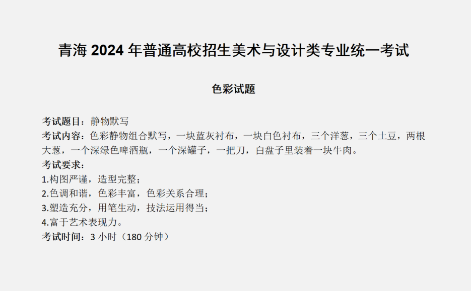 2024年青海美术统考考题(色彩) -免费斗地主